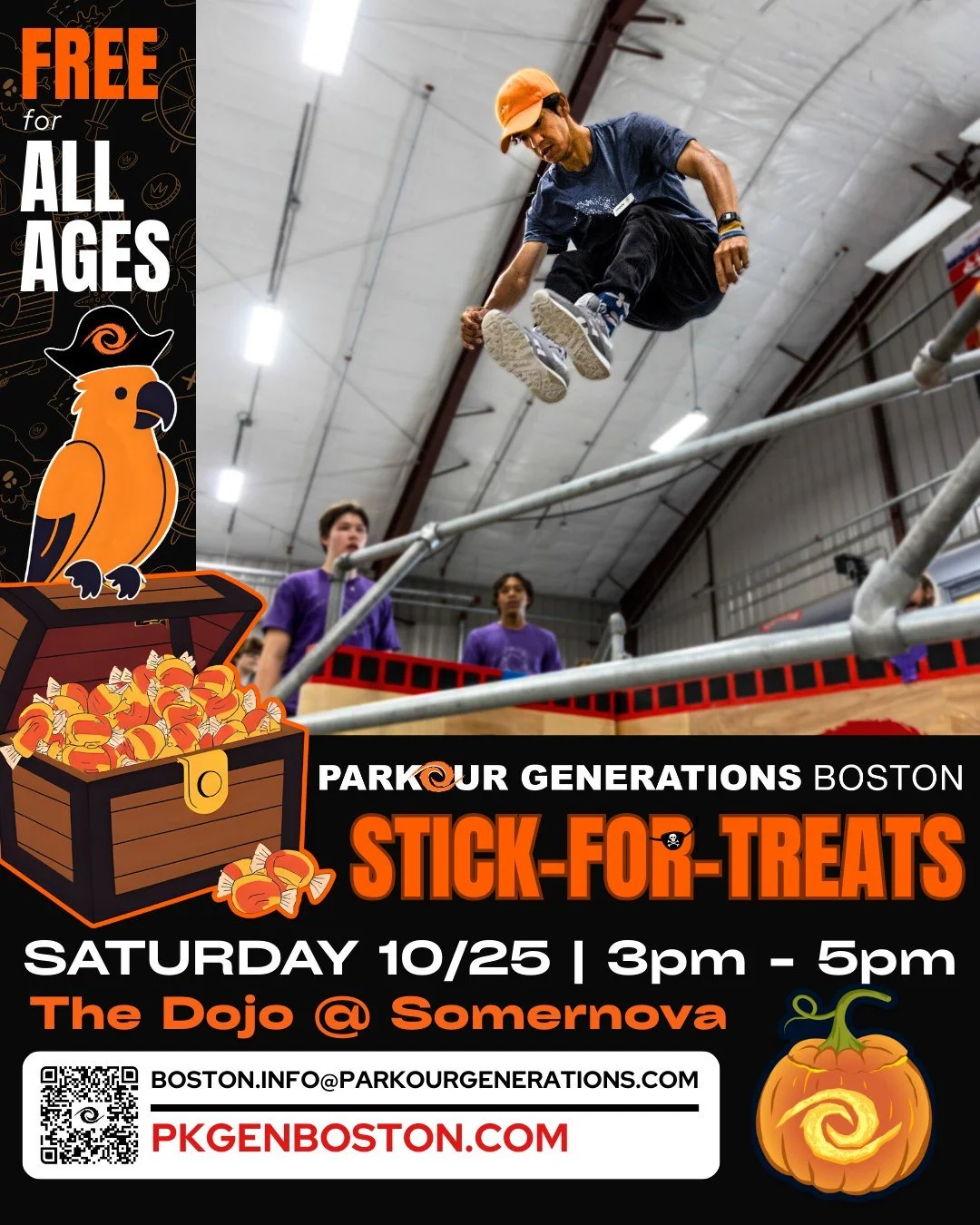 PLAY - Have fun! Bring your friends, test your skills to see if you can do the course with additional impediments, watch the action, and play around on some of the related parkour challenges we’ll have in the area!